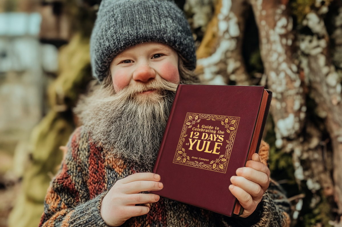 Tonttu with mock-up of A Guide to Celebrating the 12 Days of Yule Family Heirloom Edition. Who is Tonttu? Meet the Yule G [...]
